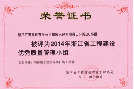 2014浙江省工程建设优质管理小组