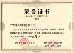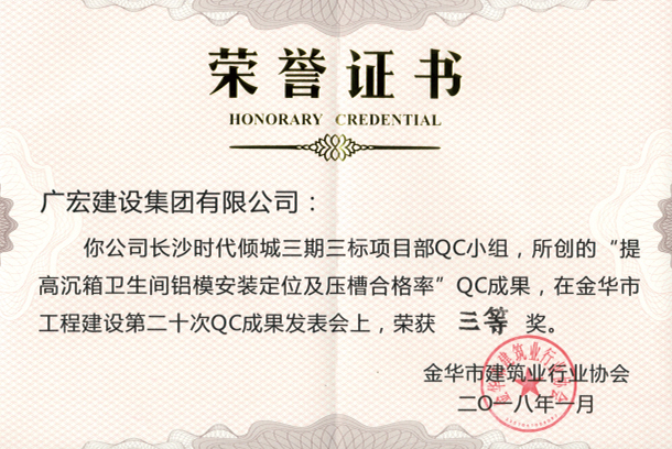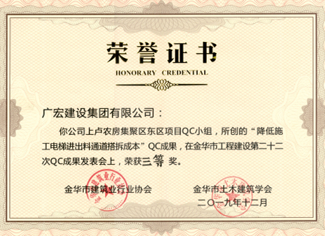 金华市QC成果三等奖