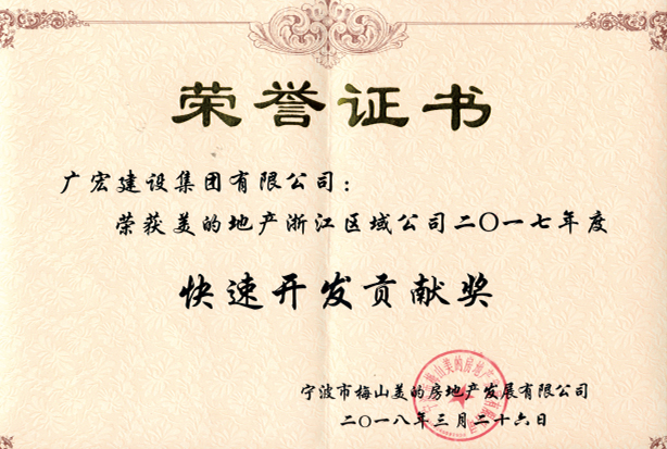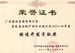 获美的地产浙江区域公司2017年度快速开发贡献奖