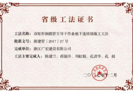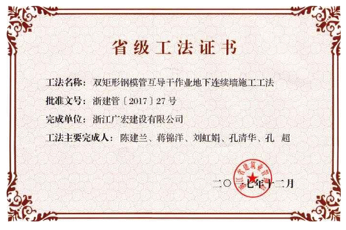双矩形钢模管互导干作业地下连续墙施工工法省级工法证书
