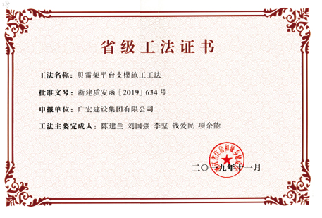 贝雷架平台支模施工工法省级工法证书