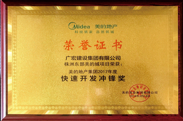 美的地产2017年度快速开发冲锋奖