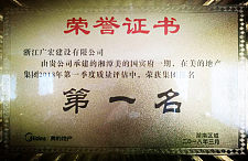 4月18日,湘潭美的国宾府项目经理郭国权高兴地从美的地产集团领导中接过“美的地产集团2018年第一季度质量评估集团第一名&r...