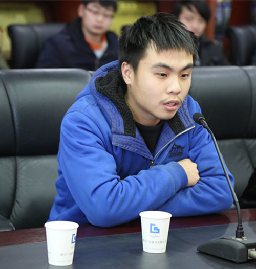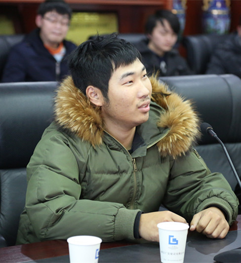广厦学院的戴正、义乌工商学院的胡哲昕、陈彬彬 、朱明明、成都艺术学院的赵超分别发言,他们表示在广宏的工地上学习已有一段时间,从不习惯到逐渐适应项目部的工作,师傅们工作尽心,肯指点,教技术,指导我们如何与一线操作工沟通,关心照顾我们的生活,让我们有到家的感觉。我们中有的成为实测实量员,有的已成为栋号长。公司总工室和项目部还让我们参加了BIM技术应用,感到十分荣幸。