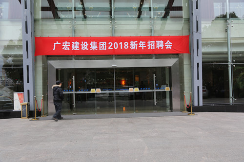2018年2月10日,东阳大厦一楼,广宏建设集团2018年新年招聘会正在如火如荼地进行,来自东阳、江西、安徽、宁波以及辽宁等地的应聘者骆驿不绝,应聘分公司经营部负责人、项目负责人、项目技术负责人、信息技术主任和工程师、BIM技术工程师、建筑深化工程师、实测实量工程师、资料工程师、核算会计师、税务筹划师、出纳、会计、法务专员、客户经理、安装质量工程师、栋号长、安全员、施工员等350余个岗位。