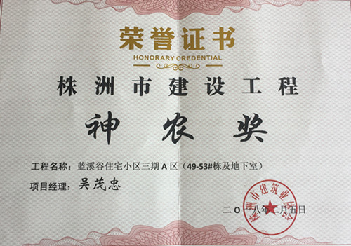 3月10日,从湖南株洲建筑业协会传来消息,广二建喜获两项“神农杯”,项目经理杨恒亮、吴茂忠获“神农奖证书”。