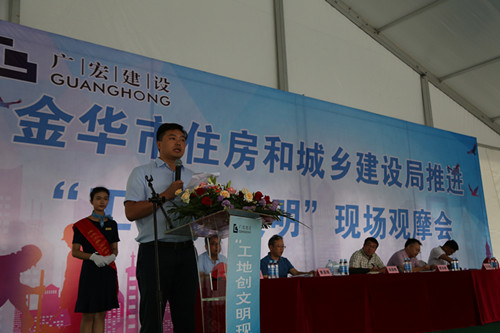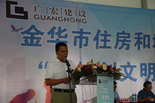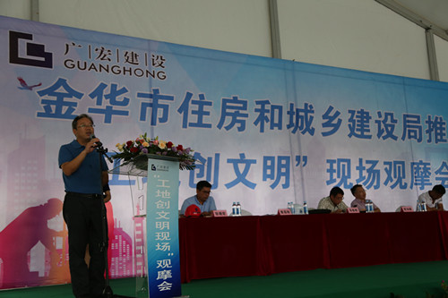 市建设局党委委员贲鸿程充分肯定了广宏建设集团对本次“工地创文明”推进会所做的成绩。他说,今天在美辰园召开现场观摩会,是金华市全面推进工地创文明的开始,是一场“动员会、明白会、决心会”,工作考核结果与项目施工企业评优评先和信用信息挂钩。希望大家以美辰园项目为范本,努力做好“工地创建文明”工作。