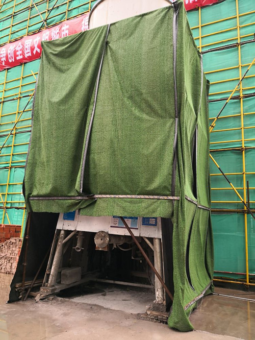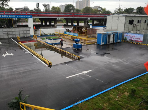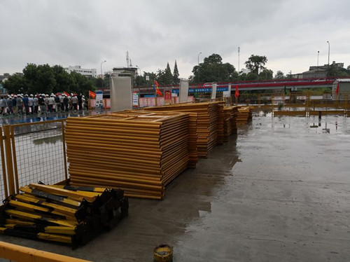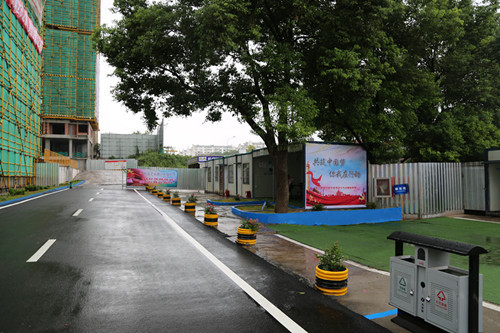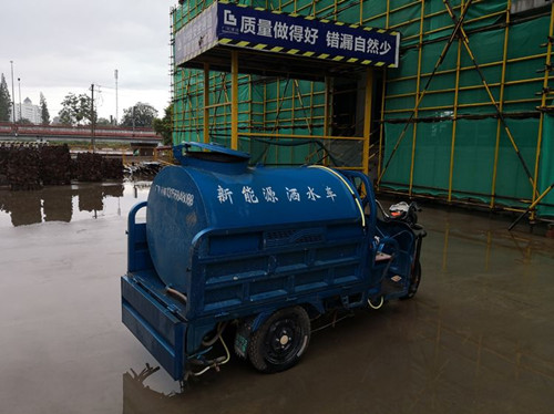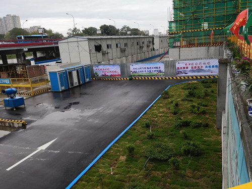 办公区、生产区、生活区分隔,蓝颜色的是移动厕所及雾炮