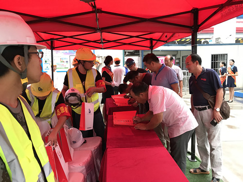 为进一步抓好文明城市创建和安全生产工作,落实《金华市区建筑工地专项整治行动方案》,2018年9月7日在金华市“工地创文明”推进会在美辰园召开。金华市建设局党委委员、总工程师贾润根、党委委员贲鸿程等职能部门领导、美的置业金华城市公司总经理王先林、中环监理公司总经理张晓宏、广宏建设集团总经理刘国强等在主席台就座。金华市区约200多家在建工程建设单位、施工单位及监理单位负责人参加会议。总经理刘国强作了经验介绍。