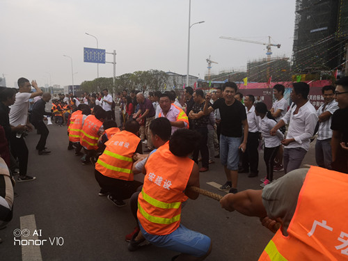 接下来,拔河比赛。没有什么比团队活动更能检验一个团队的凝聚力。在现场指挥刘潮飞的一声令下,六支代表队再一次用行动证明了团结协助、勇往直前的精神,这场拔河比赛不仅是欢乐,更是对团结协助、奋斗不息的拼搏精神最好的诠释。拔河比赛结果,株洲美的翰城第一,湘潭国宾府第二。