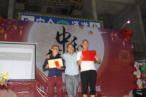 随着主持人刘良杰、杨彦玲宣布中秋晚会开始,首先由项目经理任俊俊代表集团总经理刘国强宣读贺词。