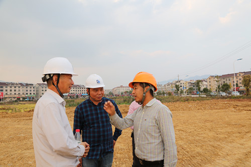 在项目现场,巍山镇委书记申屠顺达汇报了项目整体情况。该项目总建筑面积127053平方米,建设投资额22127.8505万元,由9幢18层建筑组成,可安置农房700余套,完成工期730日。目前施工方已入场施工。