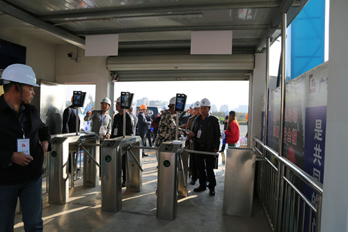 在美沁园项目入口处,安装了人脸识别的建筑工程智慧系统,进入项目部需凭身份证进入。