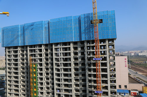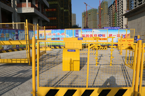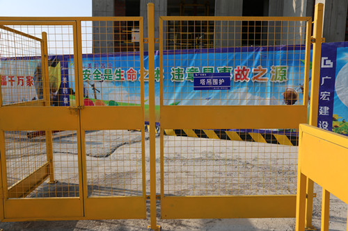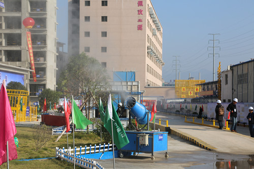 项目安装着自动喷淋系统,有效地解决建筑扬尘和噪音。
