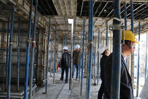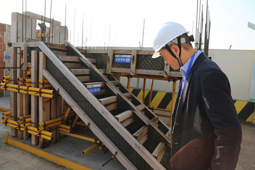 第一阶段,现场观摩美沁园铝模、爬架、全剪外墙、文明施工现场。
