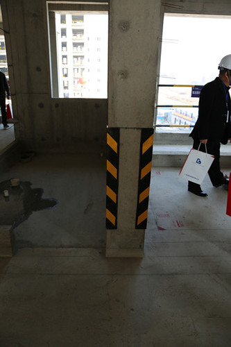 建筑楼层,设置临时厕所,在阶梯、墙体棱角处,安置成品保护设施。
