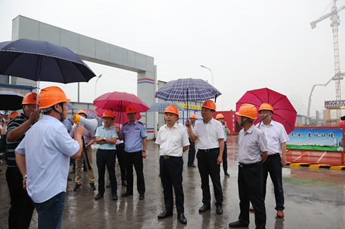 6月19日,东阳市委常委、常务副市长王天仁率市政府各职能部门、重点项目主管单位、各镇(乡)、街道领导等60余人冒雨莅临上卢农房集聚区项目参观指导。公司工程管理总监张小成陪同检查。