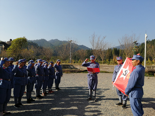 在红军练兵场,项目部团队庄严宣誓。