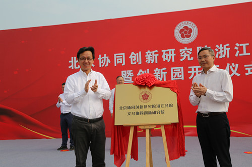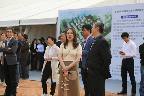 今天(10月23日)上午,北京协同创新研究院浙江分院揭牌暨义乌协同创新园开工仪式在义乌佛堂双江湖科教园区举行。金华市委常委、义乌市委书记林毅、北京协同创新研究院院长王茤祥为北京协同创新研究院浙江分院揭牌,林毅宣布义乌协同创新园开工。副市长骆小俊主持揭牌暨开工仪式。协同创新研究院、义乌市政府有关部门、双江新区管委会、佛堂镇政府、施工和监理单位等数百人参加了开工仪式。广宏建设集团有限公司总经理刘国强、可津润山控股集团有限公司总经理助理何可人等参加了开工仪式。