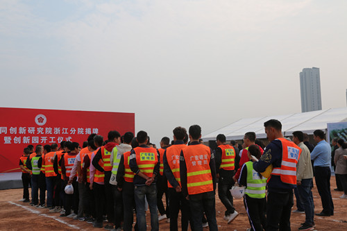 在开工仪式上,北京协同创新研究院院长王茤祥、义乌双江湖新区管委会书记黄旭光、浙江分院院长李春安等分别致词。