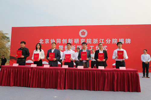 开工仪式上,还举行了北京协同创新研究院浙江分院与工业探伤X射线数字成像系统、单片集成MEMS环境压力传感器、智能工业机器人-3D视觉与识别、智能型手持式水中特征风险污染物快速分析仪、面向100G光互连的硅基高速调制器驱动器芯片、膝关节屈曲畸形康复机器人系统等6个首批入驻企业的签约仪式。