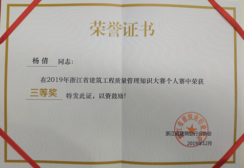 此外, 在“浙江省2019年建筑工程质量管理大赛”中获最佳组织奖。