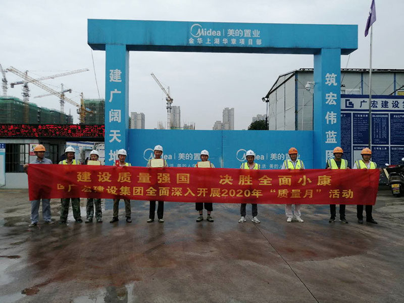 9月11日,广宏建设集团2020年联合开展以“建设质量强国 决胜全面小康”为主题的“质量月”活动启动仪式在金华上湖华章项目举行。公司工程管理部、广宏一建区域公司和项目管理团队、各工种班组长以及部分一线员工约70余人参加了活动。