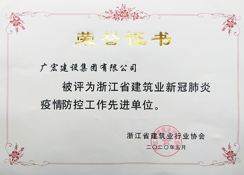 6月5日,浙江省建筑行业协会五届三次理事会暨五届四次常务理事会在杭州召开。会上公布和表彰了浙江省建筑业新冠肺炎疫情防控工作先进单位。广宏建设集团有限公司荣获“浙江省建筑业新冠肺炎疫情防控工作先进单位”。