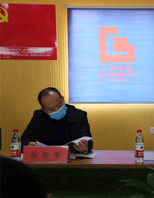 公司总经理刘国强在发言中说,上卢农房集聚区项目从2月中旬筹备复工,2月20日正式复工。员工从最初的130名到现在的513名,已基本满足复工复产之需。在疫情防控上,与业主单位联合组建疫情防控工作小组,测温、消毒、发放防疫物资、员工信息采集和登记等由防疫专员负责,员工佩戴记载有个人动态信息芯片的胸牌上下班,分期分批、一人一桌就餐,宿舍由8人/间改为2-4人/间,设立紧急隔离区,员工实现封闭式管理,所需生活用品统一采购,坚决守好项目防疫之门。然广宏在各地的在建项目复工率和员工到岗位还不是很高,疫情防控物资成本较大,增加了生产成本,疫情还可能影响项目工期等。建议政府简化员工复工复产手续,出台有关防控物资计入生产成本、因疫情使生产工期延长等可操作的政策,减轻施工企业压力。