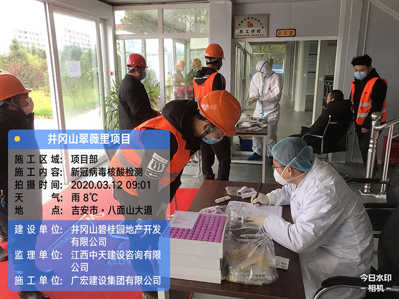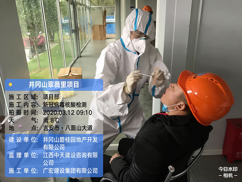 通过与井冈山市疾控中心多方沟通和精心准备,市疾控中心决定派精兵强将,专程到项目部对每一位员工进行了核酸检测。