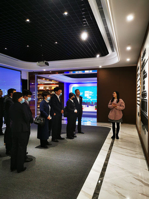 南通四建副总经理季豪带领大家参观荣誉展厅,介绍南通四建概况、发展史、组织架构、企业荣誉、党建工作、文化建设等。