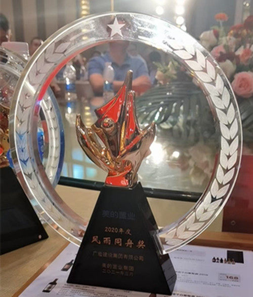 3月31日,美的置业集团2021年合作伙伴年会上,广宏建设集团有限公司被授予《2020年风雨同舟奖》。总经理刘国强上台领奖。