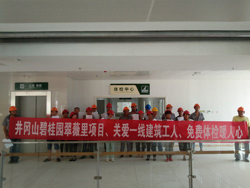 项目经理王向华说,建筑工人工作十分辛苦,特别是一线员工工作时间长、劳动强度大,也少有体检意识,往往伤病到较为严重的地步方会到医院检查。项目部开展“关爱一线员工、免费体检暧人心”活动,旨在关爱员工健康,及时了解员工身心状况,构筑生命至上、安全生产的良好环境。也体现了广宏的社会担当。