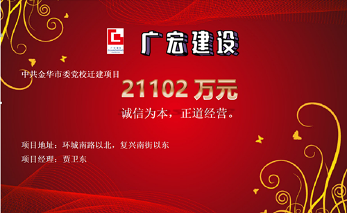 2021年5月25日,由中共金华市委党校实施的“中共金华市委党校迁建项目”,广宏一举中标。该项目合同额21102万元,总工期600天。