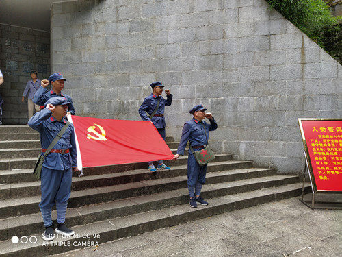 在纪念碑前,大家庄严宣誓:我志愿加入中国共产党,拥护党的纲领,遵守党的章程,履行党员义务,执行党的决定,严守党的纪律,保守党的秘密,对党忠诚,积极工作,为共产主义奋斗终身,随时准备为党和人民牺牲一切,永不叛党。