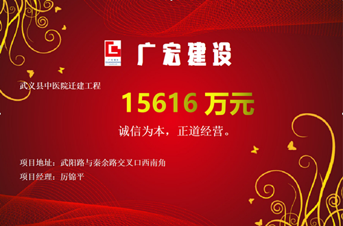 2021年6月25日,由武义县中医院实施的“武义县中医院迁建工程”项目,广宏一举中标。该项目合同金额15616万元,总工期800日历天。