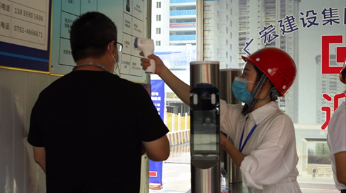 在项目入口,疫情防控专员和安保人员负责道闸口人脸识别、体温测试、健康码和行程码检查和信息登记等。确保与会人员和项目人员的健康安全。