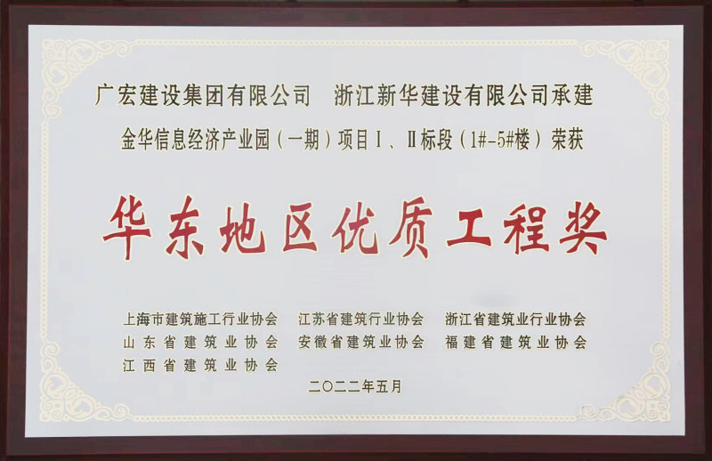 近日,2021年度“华东地区优质工程奖”揭晓,广宏建设集团金华信息经济产业园(一期)项目获此殊荣。