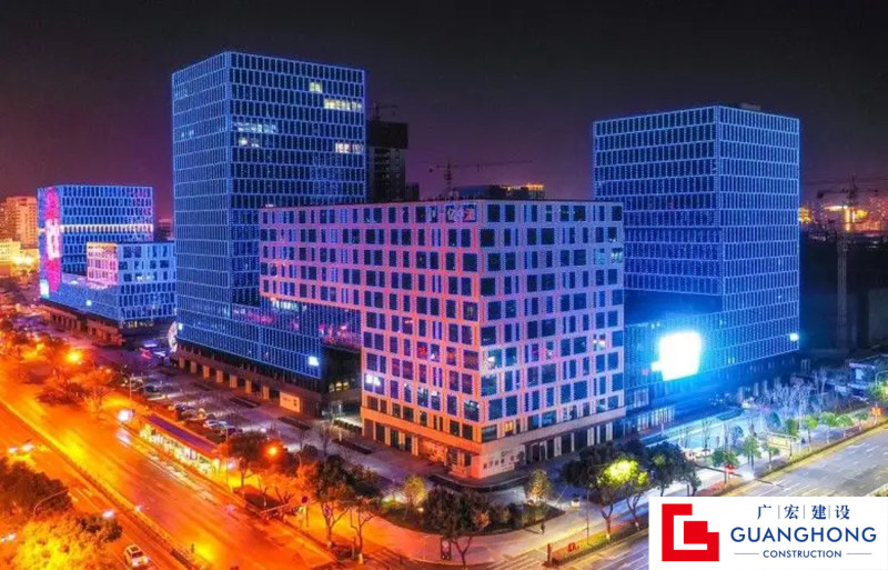 金华信息经济产业园(一期)项目位于金华市李渔路以南,婺州街以东。由公司承建的I标段(1#-3#)楼总建筑面积126834.33㎡。1#楼主楼为酒店,裙房为酒店配套康体娱乐功能;2#、3#楼首层为门厅及商业,其余楼层功能为办公。该工程主题框架结构,核心筒部分为剪力墙结构。工程交付以来,使用功能良好,获得了业主方和社会各界的一致好评。