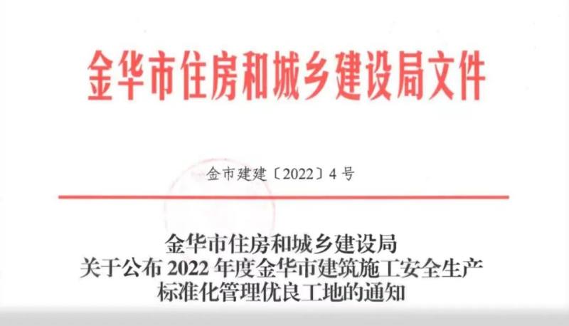 近日,金华市住房和城乡建设局发布了2022年度金华市建筑施工安全生产标准化管理优良工地名单,广宏建设再创佳绩,共有上湖华章花园、大境花园二期一标、巍山镇农房集聚区项目、上卢农房集聚区建设项目4个工程项目同时上榜。