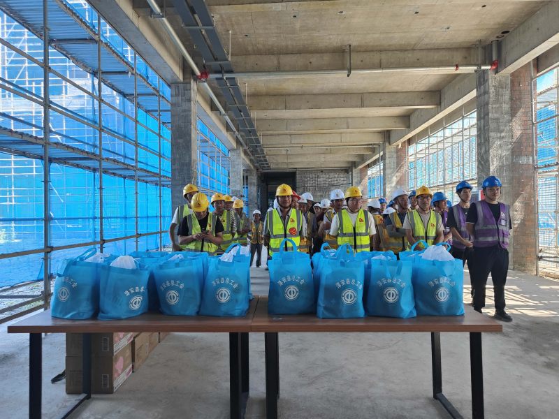 7 月 24 日,淳安县人大常委会副主任、县总工会主席叶春晖,县总工会党组书记、常务副主席方文田,县总工会党组成员、副主席徐迅,以及淳安县经济开发区管委会工会主席周华生等一行领导,亲临广宏建设淳安县千岛珍珠学校工程项目现场,开展高温慰问活动。上午,烈日炎炎,项目工地建设如火如荼。叶春晖主席一行向项目管理人员详细了解工程进度、安全生产及防暑降温措施落实情况,对广宏建设集团在高温下的高效作业和严格管理给予高度评价,并强调要做好防暑降温,确保工人安全。随后,领导们亲手将慰问品发放到工人手中,亲切询问工作与生活情况。
