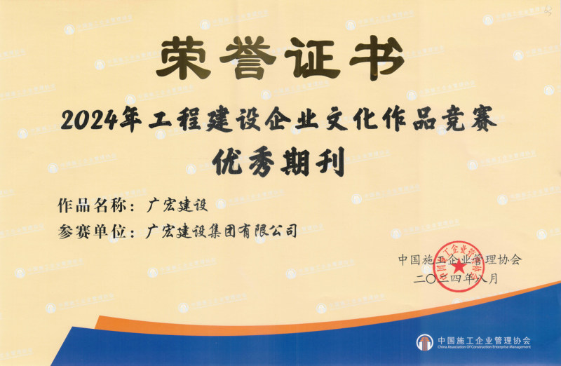 近日,中国施工企业管理协会在南京召开2024年工程建设企业文化建设成果交流会,会上发布了2024年工程建设企业文化建设系列活动成果。广宏建设集团荣获2024年工程建设企业文化作品竞赛优秀网站、优秀公众号、优秀期刊三个奖项。