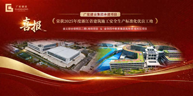 近日,浙江省住房和城乡建设厅公布“2025年度浙江省建筑施工安全生产标准化优良工地”认定结果。公司承建的金华四中教育集团高铁新城校区项目、金义综合保税区二期L地块项目成功上榜。