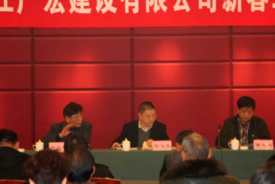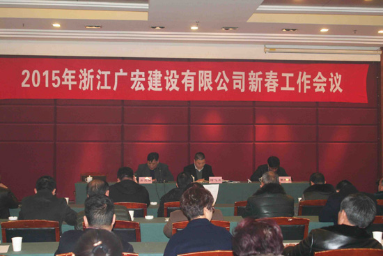 公司总经理吴立国在会上作了题为《苦练内功 难中求进 谋求广宏事业更好发展》的报告。报告中对2014年公司各项工作运营情况进行了全面的总结,并对2015年的工作作了重点部署。他指出,尽管2014年市场形势严峻复杂,公司面临很大的困难和压力,但基本完成了全年主要工作目标,在业务承接、工程管理、财务运营、海外拓展、法务审计、企业制度建设等方面取得了一定的成绩。同时,他对2015年工作作了主要部署和安排,他强调,在2015年工作中,公司要转变观念,转变思路,转变运营模式,在“转型、拓展、管理、清欠、培养”等5个方面狠下功夫,顺利完成2015年公司各项目标任务。