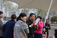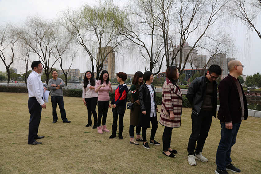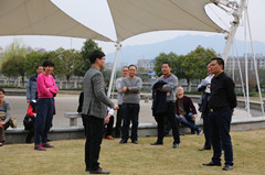 难得放松,总得有些节目。公司顾问应青带领大家做有关团队协作的游戏,旨在提高大家正确领会领导意图、有效传达领导指示并做好组织落实的意识。