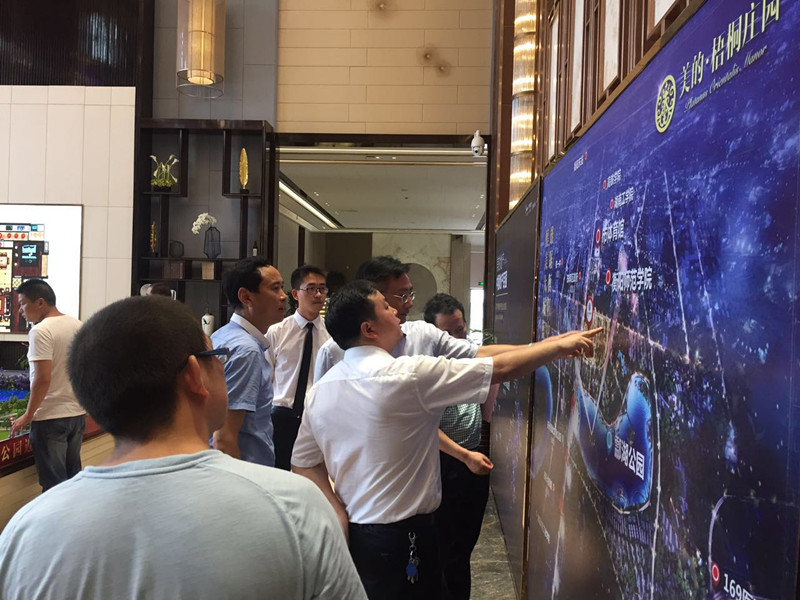 6月23日上午,衡阳市政府副秘书长李育全、珠晖区区长刘桢干带领区政府、市规划局、市建设局、市城建投、市城市办、酃湖乡等领导一行,莅临美的梧桐庄园进行调研指导。