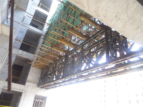 QC活动过程中,集团总工室多次赴山西盛科幸福城项目部进行指导跟踪,对贝雷架租赁公司进行了实地考察,对贝雷片的产品质量文件进行了检查确认。实施过程中,小组严格控制材料质量,对实际搭设情况与方案进行了严格的比对。经检查支模体系实际搭设与方案相一致,浇筑时贝雷架平台中心挠度为4mm,小于方案设计中允许挠度值16.4mm。施工过程中,操作人员的安全操作、安全装备等得到了严格的监管。