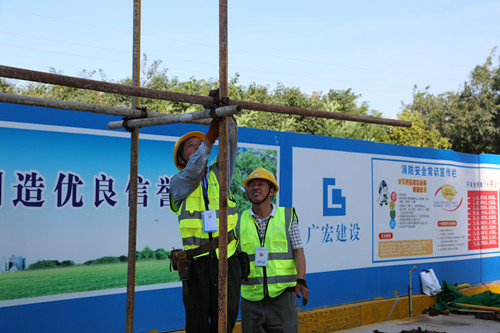 9月26日,南昌赣电梦想家四期项目部,彩旗招展,鲜花盛开。来自安徽、河南、浙江、湖北、湖南、江西、广西、贵州等十七个项目部的60余名广宏职工齐聚于此,参加广宏建设首届职工技能大比武。公司董事长何飞龙、总经理刘国强亲临比赛现场。美的地产南昌工程部黄磊、袁廷伟、监理公司监理总临代表危义兵莅临指导。
