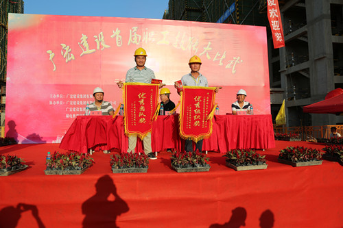 董事长何飞龙、总经理刘国强、副总经理张小成和广宏二建总经理刘潮飞来到比赛场地为比赛选手助威加油。