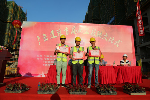 架子工:金华美辰园项目部徐晟元获得第一名,弋阳壹品凯旋项目部朱建忠获得第二名,广厦天都城项目部黄德华、南昌赣电梦想家四期项目部王珍锡、贵州项目部张光茂获第三名;